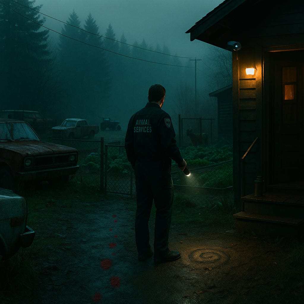 ‘Mr. Carmel, I’m not here to prosecute you. Just wanna find this creature, end its suffering, and dispose of the carcass. I got no desire to file more paperwork than I need to. Alright?’